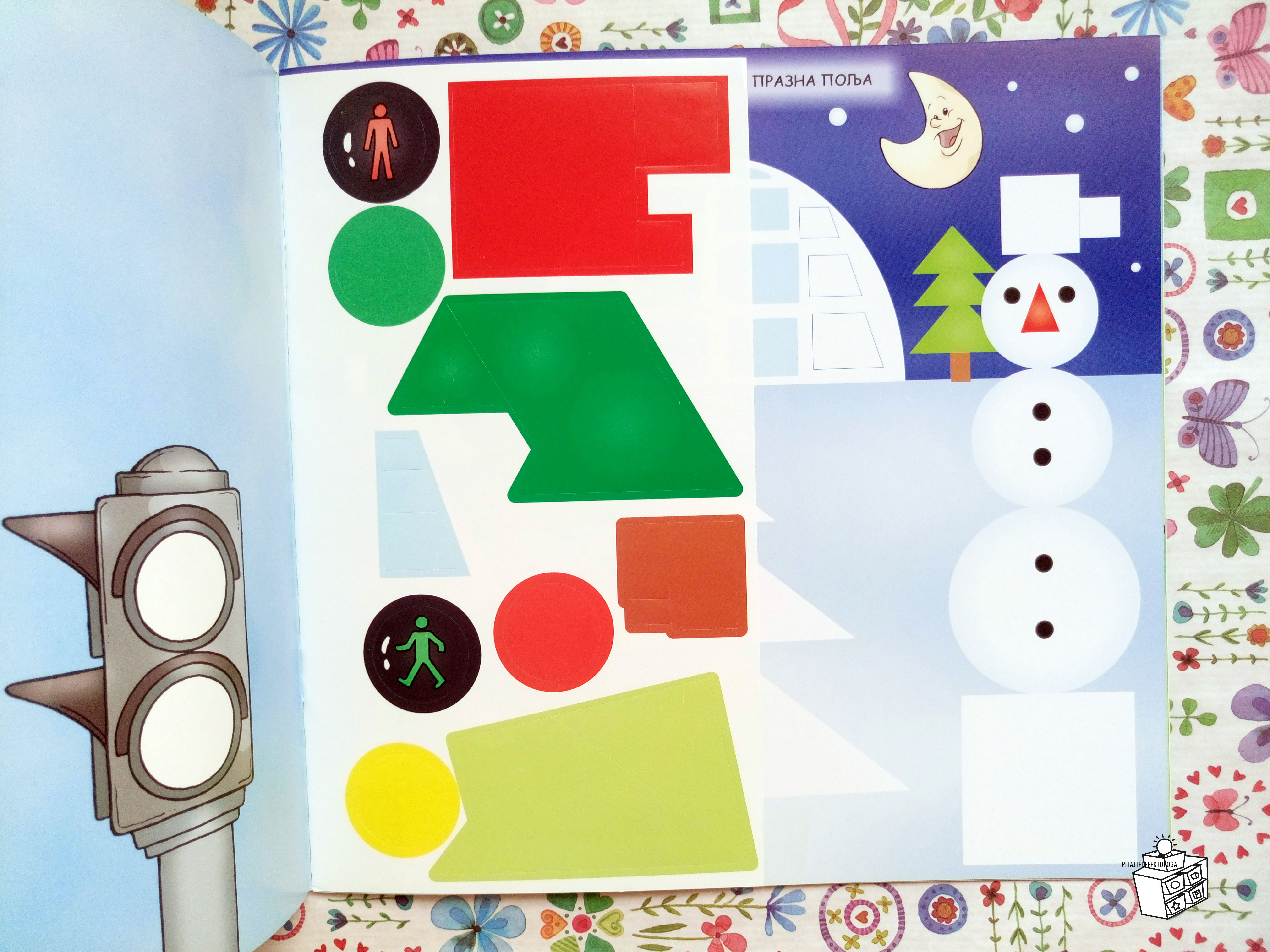 Uz svaki radni list dobijete i kartonske dodatke od kojih se mogu napraviti modeli ili igre. Sami zadaci su osmišljeni tako da se rešavaju docrtavanjem, bojenjem ili lepljenjem nalepnica na predviđena mesta.