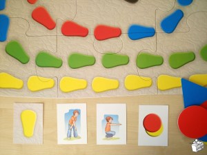 Na početku teksta sam napisala da ova igra podrazumeva funkcionalni i konstruktivni tip igre, a to čini upravo kroz zadatke koji se nalaze na poleđini kartica žutih, zelenih, plavih i crvenih stopala. Poštujući principo od lakšeg ka težem zadaci su osmišljeni tako da zahtevaju imitaciju pokreta (funkcionalan igra), ali i građenje oblika prema zadatom šablonu (konstuktivna igra).