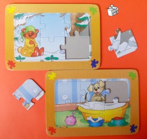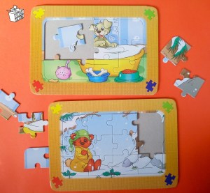 Kada dete savlada obe slagalice, zadatak ćete “zakomplikovati” tako što ćete izvaditi delove obe slagalice i dati detetu da reši nastao problem.
