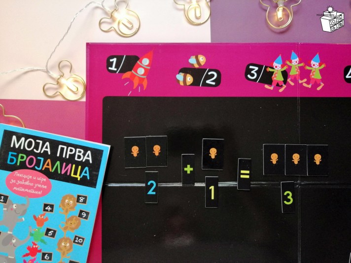 A kao pomoć u osmišljavanju zadataka tu je i knjiga koja dolazi u kutiji Moja prva brojalica, koja na 48 strana nudi zabavne zadatke sa puno lepih i jasnih ilustracija kako bi se dete zainteresovalo za igru i rad (jer za decu je rad upravo igra).