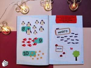 U knjizi se mogu pronaći i zadaci za razlikovanje količine MNOGO – MALO, zadaci sa prebrojavanjem, spajanjem, učenjem matematičkih pojmova – primere zadataka pogledajte na slikama ispod.