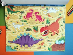 Na svakoj strani nalazi se po nekoliko zadataka koji su vezani za temu ilustranice na toj strani, neki su lakši, a neki teži – “Nacrtaj talase i još jedan čamac” ili “Nacrtaj u jezeru ribe kako bi ovaj zombi mogao da ih upeca”; “Da li na ovom imanju ima više mačaka ili miševa?”; “U ovaj cvetni niz upiši brojeve koji nedostaju.” i ….