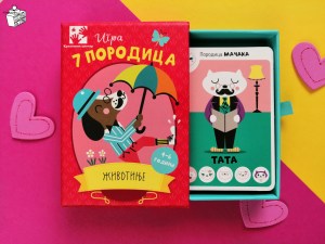 Igra 7 porodica – životinje ima za cilj pored iznad navedenih benefita da dete usvoji pojam porodice, da porodicu nemamo samo mi ljudska bića, već i životinje i da svaka porodica sadrži članove koji se razlikuju. U ovoj igri svaki igrač dobija pet karata, a cilj je da se složi što više porodica, a pobednik je onaj koji sastavi više. Igrači traže jedni od drugih članove porodice koji im fale – trik je zapamtiti koje članove drugi igrač skuplja i pretpostaviti koje karte drži u rukama.