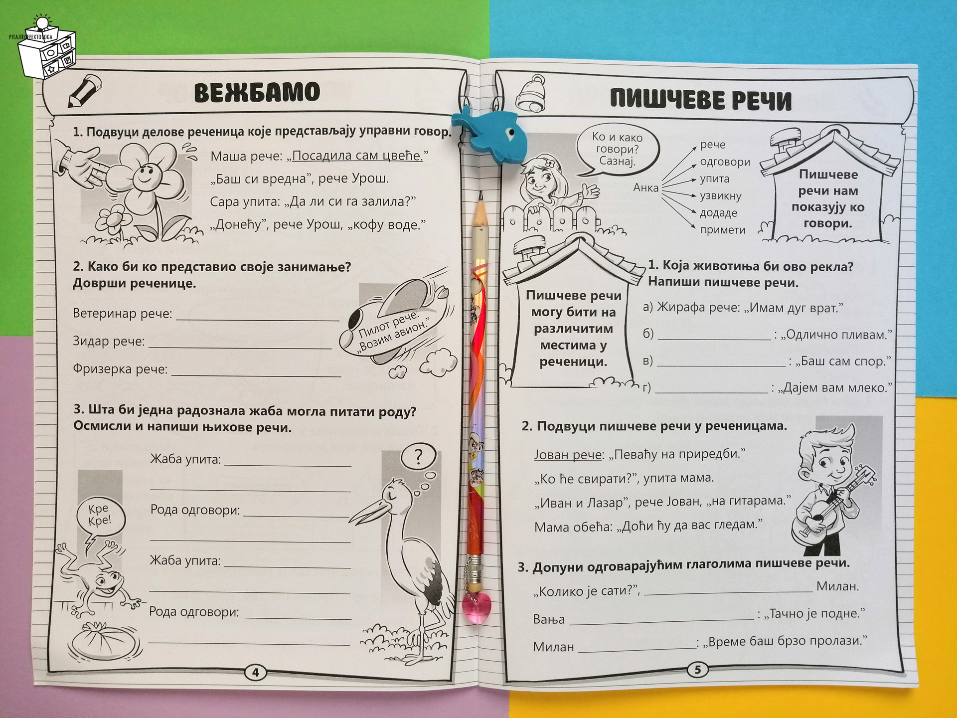 Kako radim i sa učenicima mlađih razreda u vidu podrške u učenju (savladavanje gradiva iz srpskog jezika, matematike i sveta oko nas odnosno prirode i društva), kada je u pitanju srpski jezik i pravopis najčešće deca mlađih razreda imaju problema sa upotrebom upravnog govora i pravilnim pisanjem rečce li i ne.