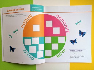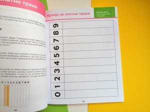 Obe radne sveske nude niz različitih zadataka, ali što je najvažnije materijal koji je potreban da bi se ti zadaci savladali se nalaze na kraju svake knjige – kartice sa bojama roze kula, crveni štapovi, emocije, delovi tela…
