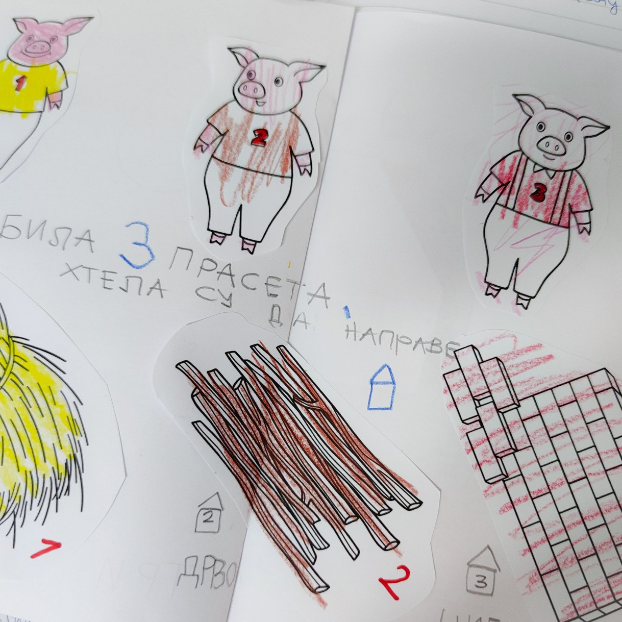 Za kraj vam ostavljam i materijal Tri praseta uz koji možete napraviti svoju knjigu i na taj način pomoći detetu da uz vizuelni vodič može prepričati priču koji je čulo.