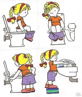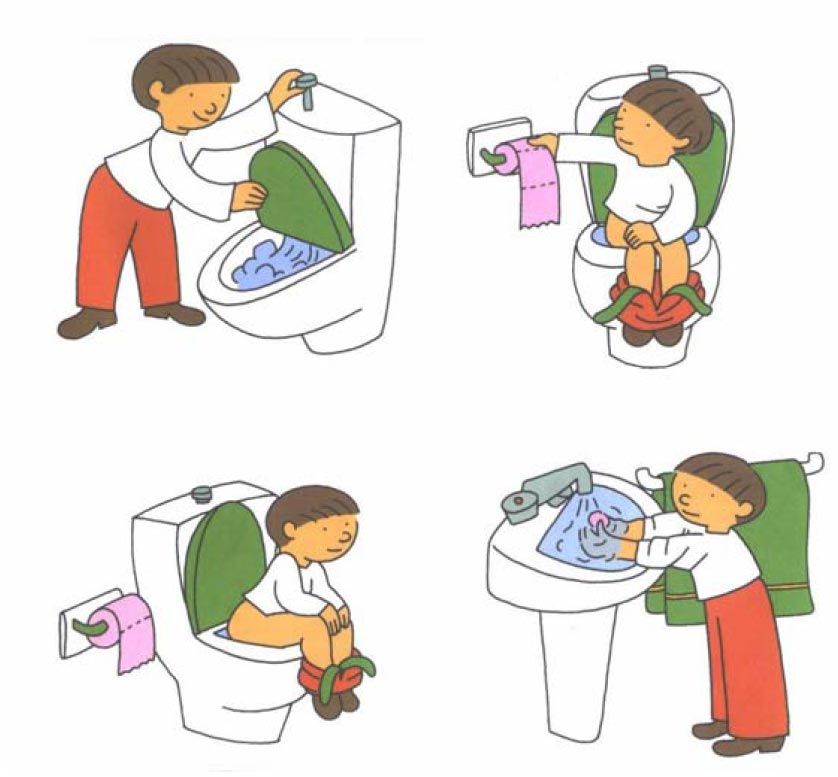 Kada krenete sa uvežbavanjem ove veštine, nemojte čekati da vam dete kaže da im se ide u toalet, recite da je vreme za tolaet. Ne zaboravite da komunicirate. Ukoliko je potrebno napravite vizuelni raspored, šta se radi u toaletu. Slike poređajte po redu kako biste detetu olakšali da razume korake koje bi trebalo da napravi.