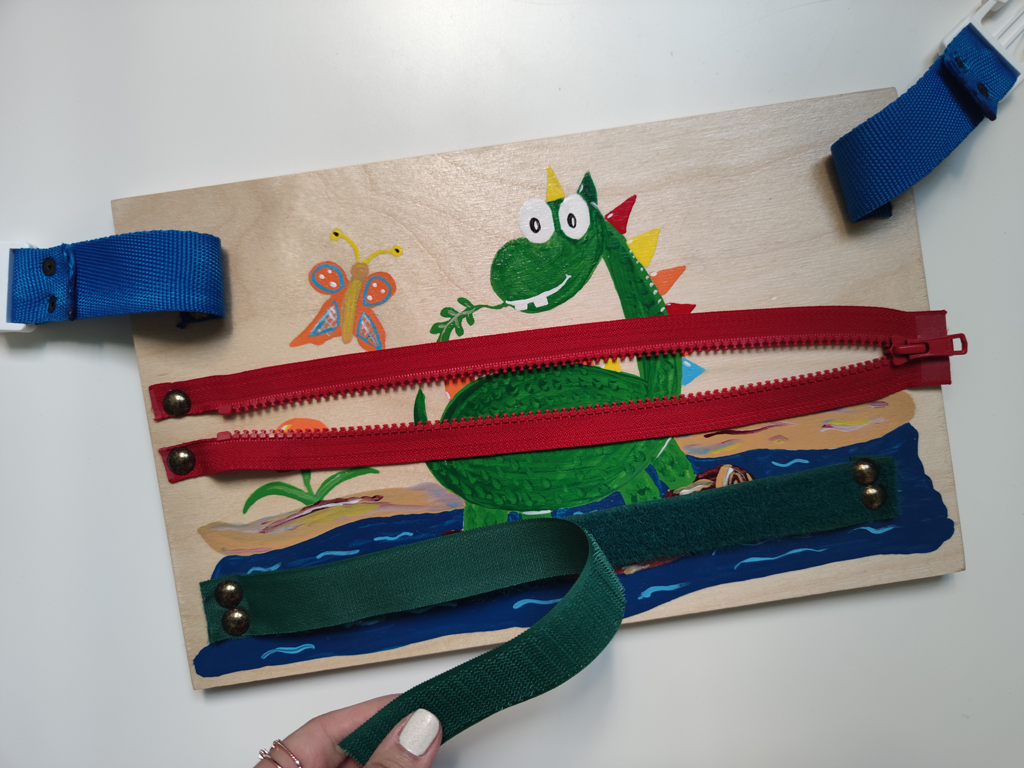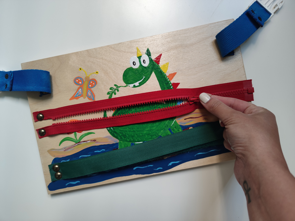 IGRAČKA ZA RAZVOJ PRAKTIČNIH VEŠTINA KORIŠĆENJA RAJSFERŠLUSA, KOPČE I ČIČAK TRAKE