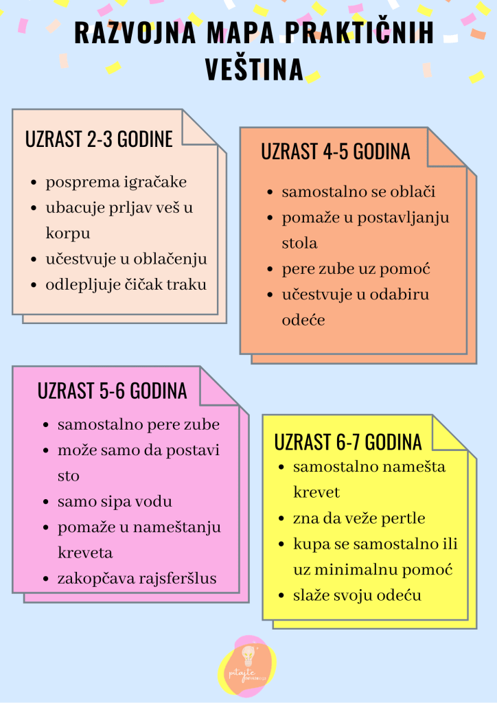Kako izgleda razvojna mapa praktičnih veština za uzrast od 2 do 7 godina?