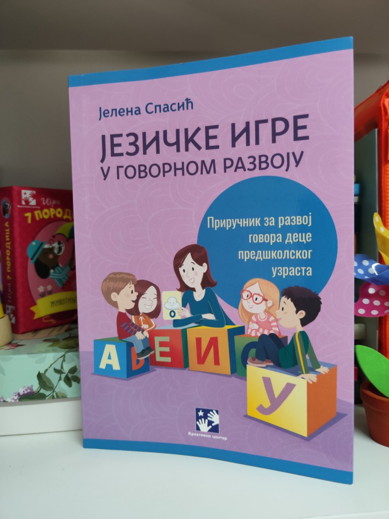 Priručnik “Jezičke igre u govornom razvoju” je novo izdanje Kreativnog centra i nudi posršku upravo u izvođenju ovih aktivnosti, namenjen je svima onima koji se bave razvojem govora predškolske dece, a najpre vaspitačima i studentima – budućim vaspitačima. Ovaj priručnik mogu koristiti logopedi, ali i roditelji koji kod kuće stimulišu govorno-jezički razvoj dece.