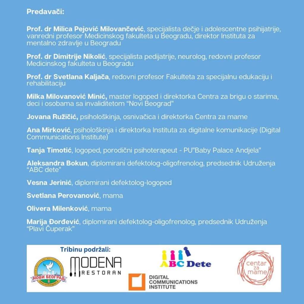 U organizaciji Udruženja “Plavi čuperak”, 3. juna biće održana tribina “Od saznanja do tretmana” koja je namenjena defektolozima, logopedima, stručnim saradnicima, vaspitačima, nastavnicima, učiteljima, studentima i roditeljima. Tema tribine je jako važna, jer to je jedan može se reći dug put koji nosi određene izazove i prepreke. Predavači na tribini su stučnjaci sa godinama iskutva i roditelji, te verujem da će biti sjajna razmena znanja i iskustva.