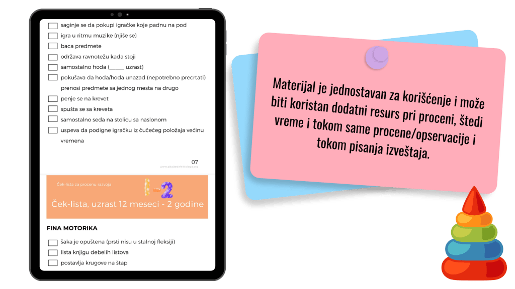 Ček-lista za procenu razvoja sa materijalima za procenu: uzrast 6-7 godina