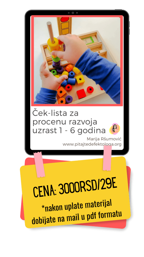 Ček-lista za procenu razvoja sa materijalima za procenu, uzrast 6-7 godina
