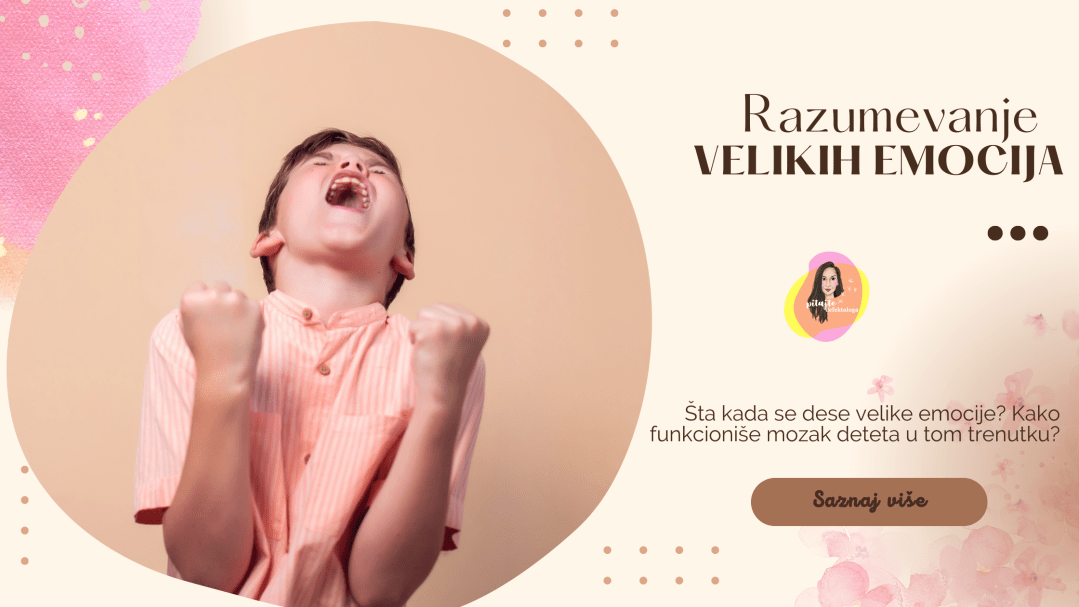 Sve emocije su podjednako važne, kao što mi osećamo sreću, tugu, bes, ljutnju, radost, uzbuđenost,... tako ih osećaju i deca. I imaju podjednako pravo da se tako osećaju. Ponekad se desi situacija „Velikih“ emocija. I tada mi kao odrasli znamo da se osetimo neprijatno, nesnađeno, ljuto, trigeruje nas ponašanje deteta, ali tada bi trebalo da … Continue reading Razumevanje velikih emocija